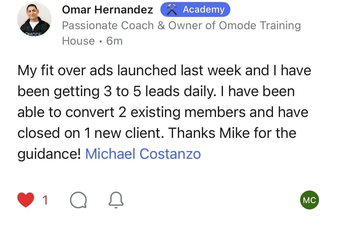 Before joining Gym Academy I was in a desperate spot. I had a great product a beautiful gym and NOT ENOUGH CLIENTS to survive! However, since joining Gym Academy last year my yearly sales DOUBLED. This is a no joke program... no secret sauce, no hidden magic formula, just tried and true sales and marketing training that will get you a reliable stream of clients so you can finally have the gym of your dreams!